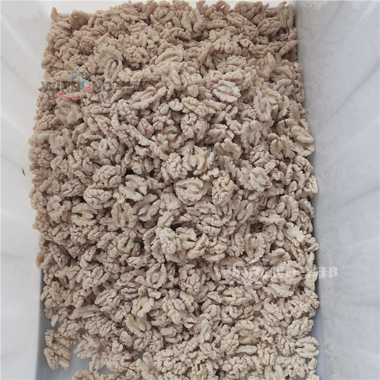 核桃仁自動輸送到脫皮機,脫皮機采用高壓循環(huán)水泵,高壓噴淋系統(tǒng)、自動翻料、運行變頻調(diào)速、自動出料連續(xù)式作業(yè)。