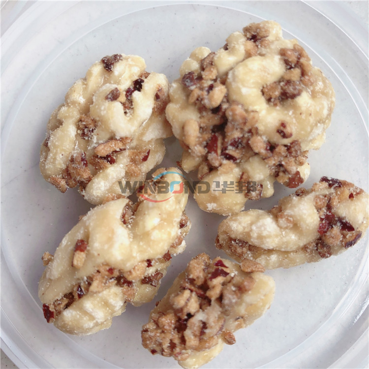 1.浸泡:對核桃仁進行脫皮前的浸泡,浸泡軟化核桃仁表面浮皮,利于下一步的脫皮作業(yè)。浸泡時間可根據(jù)客戶自己的加工工藝自行設(shè)定,網(wǎng)帶運行速度可以調(diào)速,核桃仁均勻浸泡之后,自動進入到下一步工藝。