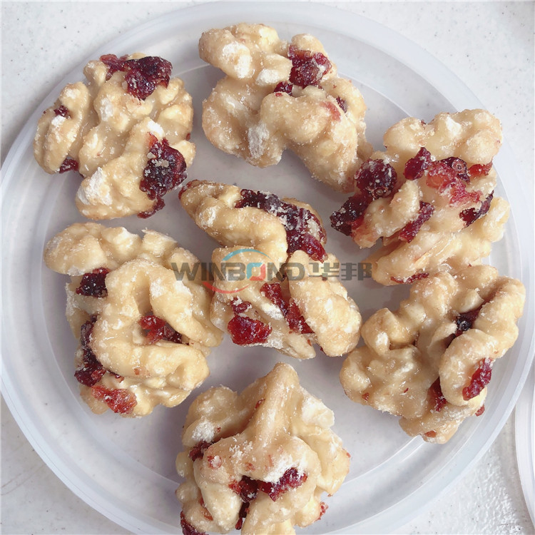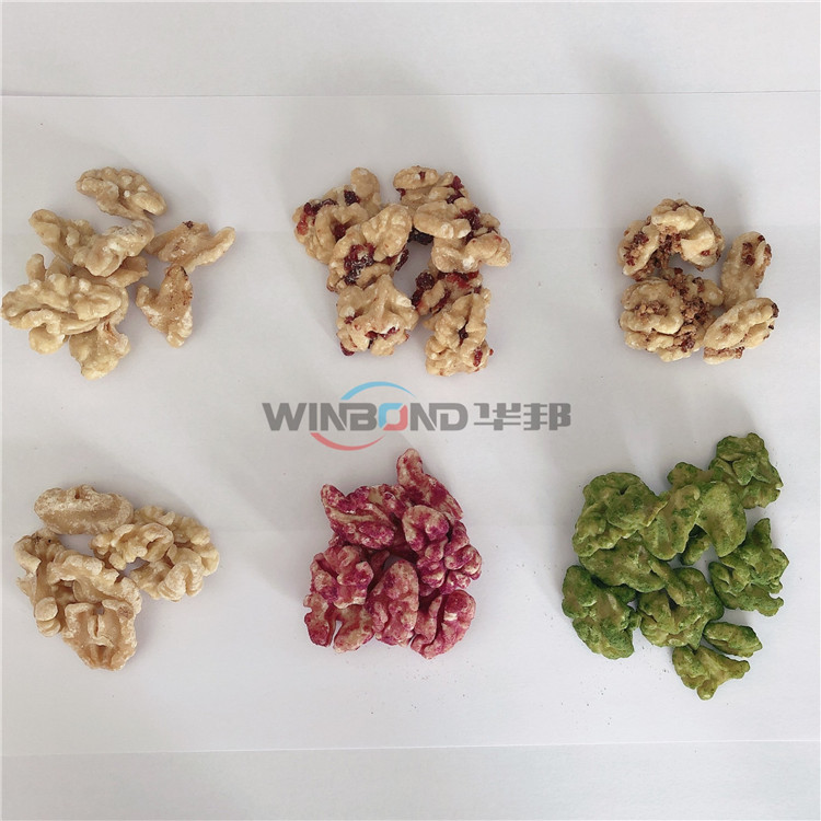 2.滾筒脫皮:采用循環(huán)水泵、蒸汽加熱系統(tǒng)可以快速、洗掉核桃仁表面的泥垢、浮皮。清洗后進入清水噴淋區(qū),然后進入振動篩,由振動篩將大部分水珠震動掉后進入風干線或烘干機,風干或烘干完畢后進入下一道工序。生產(chǎn)線可實現(xiàn)變頻調(diào)速、自動控溫且節(jié)水。