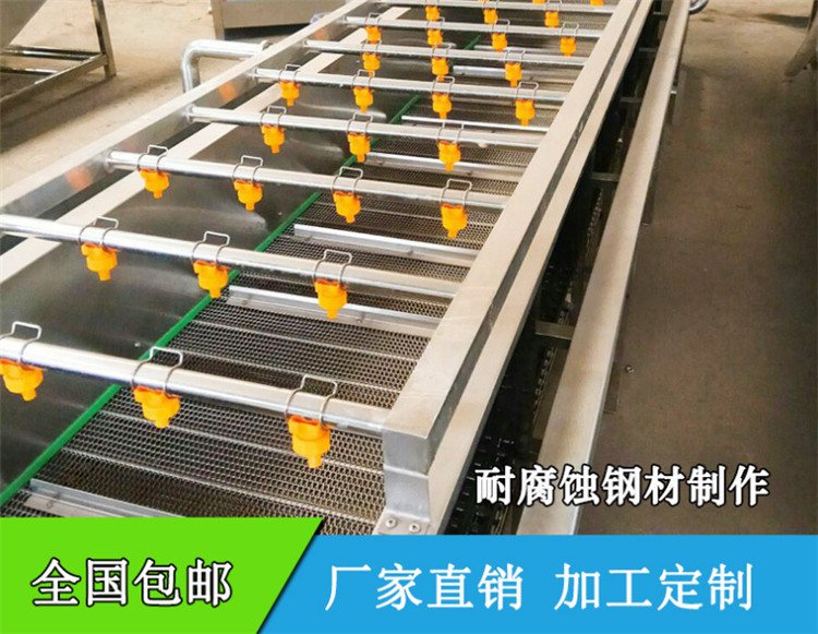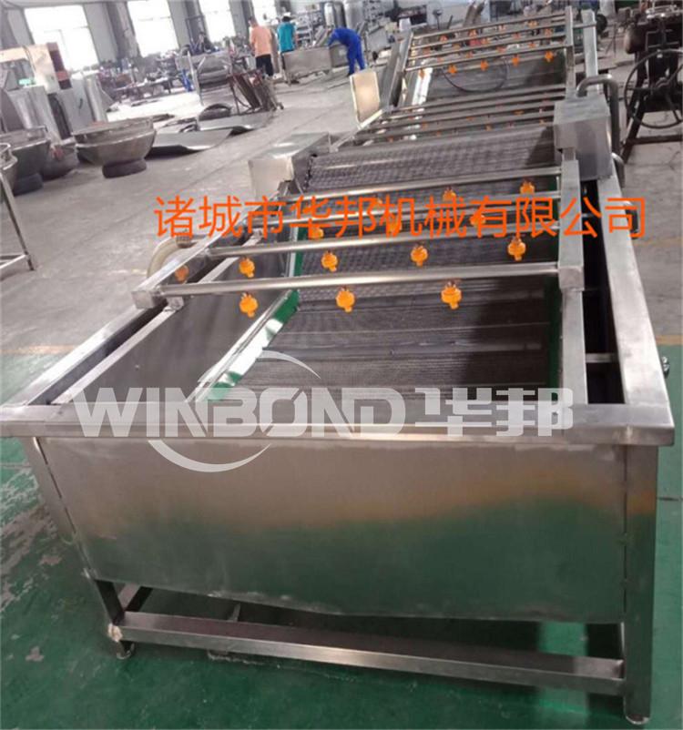 氣泡清洗機的原理主要是利用箱體前部分設備箱體中注適量的水,原料在經(jīng)過箱體時,會與氣泡機和水的結合作用下做翻滾狀態(tài),并隨網(wǎng)帶不斷向前推進,在出水面時,設有噴淋頭,高壓沖洗(即二次清洗)
