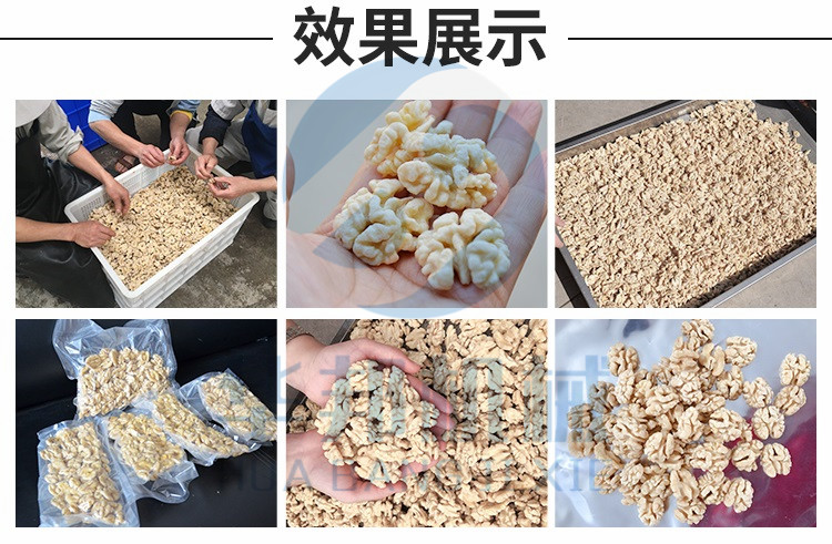 5.設(shè)備底部配有兩個水箱,水箱上部配有物料盤,用來接核桃仁皮衣,保證底部水箱里面的水的干凈度,保證產(chǎn)品的干凈衛(wèi)生