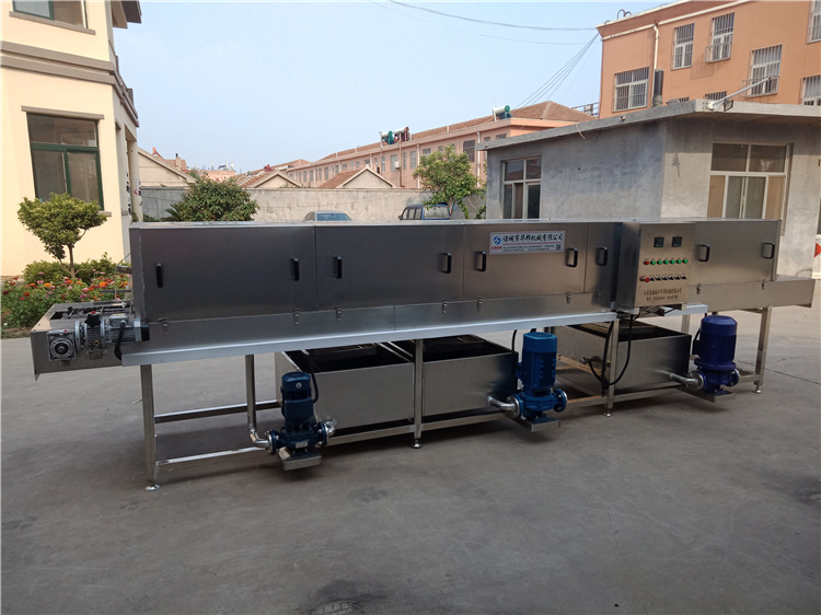1.預清洗階段:筐子首先通過輸送系統(tǒng)進入漂洗段,用高壓熱水進行預清洗。